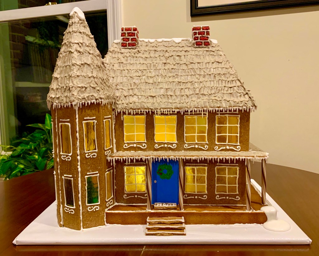 Next, Cheshire exercised her ginger skill and made a magnificent house for these winter holidays. The two chimneys was a a hint about the house that Cheshire and Justin have found and that they will be moving into very soon. More on that after closing. The other house was also made by Cheshire for Julia to decorate. In the craziness of this year, it was decorated on the last day of winter break vacation and I took a picture before she was ready to eat the walls.