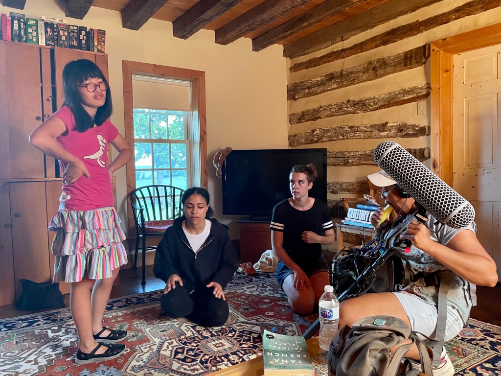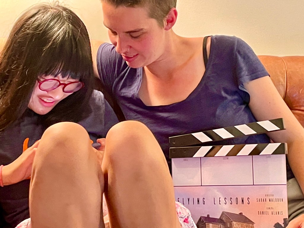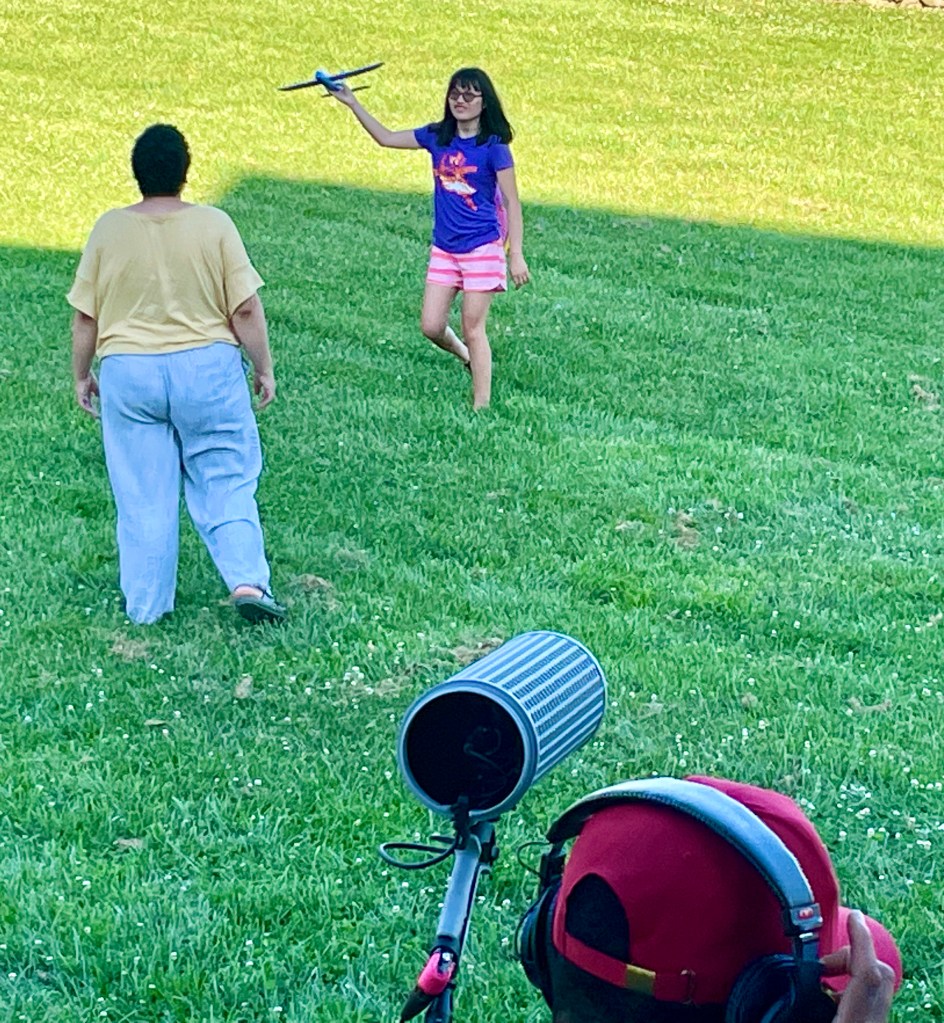 Julia has enjoyed the acceptance of this little community. Accepted as she is and for who she is. Sarah, and two others, Reno and Syd, have looked after her needs and coaxed her into work. By herself, Julia has considered and commented on the process of work. Everyone on set has entertained her, catered to her a little bit or a lot, and most importantly, her engaged her in conversation. Most of the time, conversations have been on her preferred topics and everyone follows her lead. Sometimes, she allows others to question her or offer a topic for consideration. This intense dose of social engagement is not perfect on her end but it is almost constant through the days. I have been actively looking and hoping hard enough that it must amount to prayer for social interaction enough for Julia to begin to move forward again socially after so many months of isolation and restrictions, so many months of zoom. In-person school and then careful in-person meetings with her therapist have kept Julia from drowning in isolation but it has been a complete surprise that the social emersion that she so desperately needs came from two weeks with a movie crew.