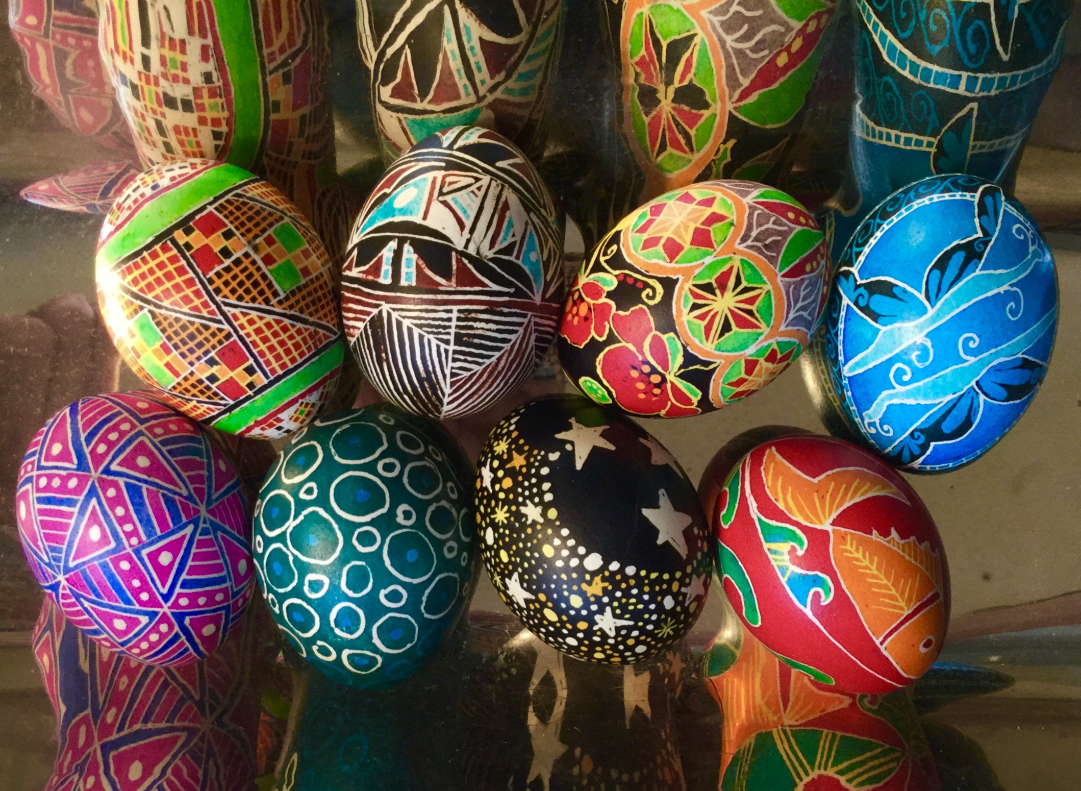 When my grandfather taught me to write pysanky, he told me of the dragon who lives deep underground. The dragon brings all the evil into the world and so, to protect the world, the dragon is chained to the wall of the underground. Every year the chains loosen because the dragon pulls the links apart, and the chain is always in danger of falling apart.The only thing that keeps the chains holding the dragon tight is the pysanky that are written each year. The more pysanky, the safer the world.