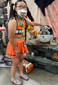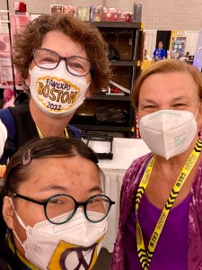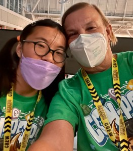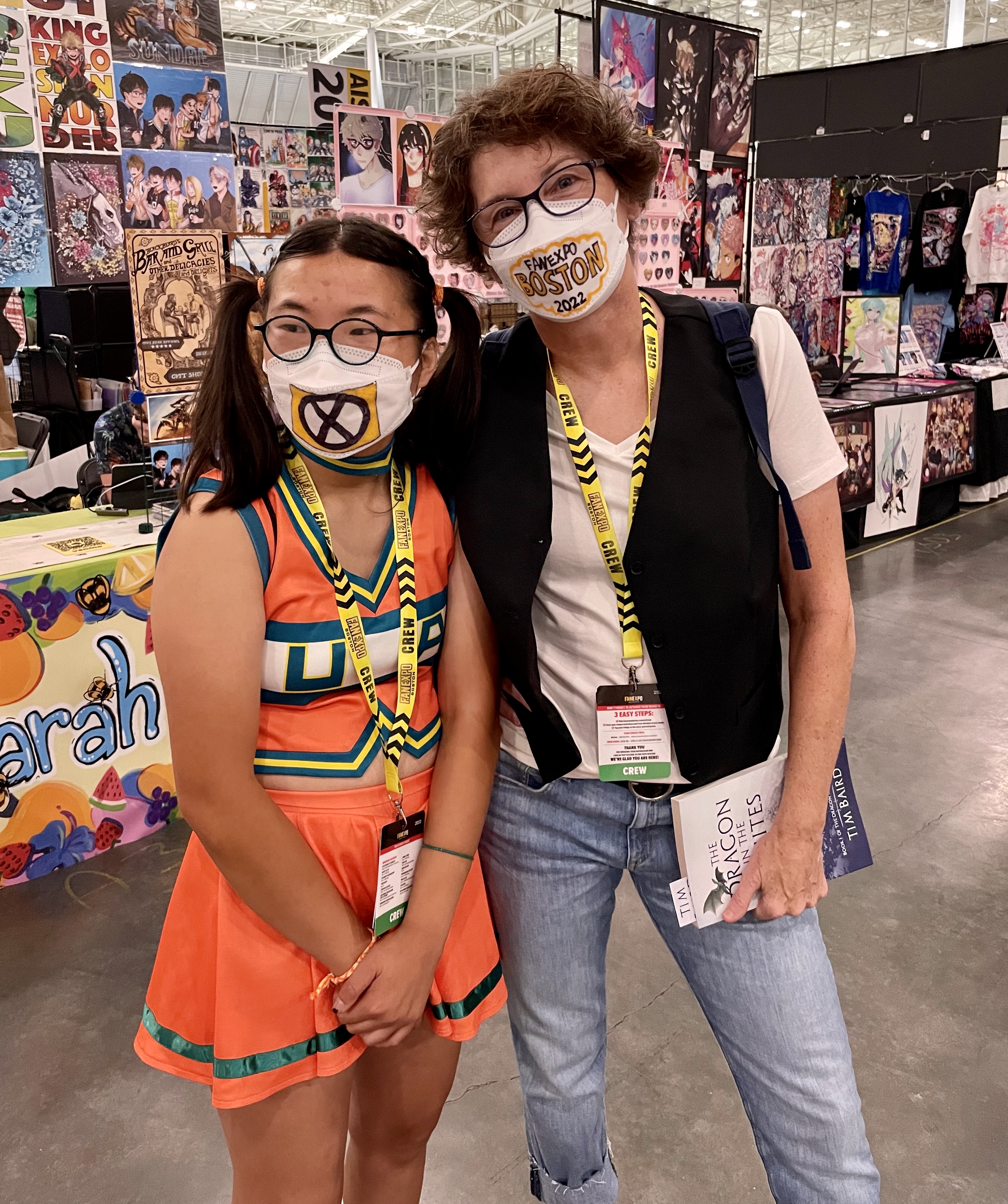 Friday evening, we went to check out the Fan Expo. We got shirts—we included Julia, Michelle, her therapist, and me. The arrangement was that one of us would be with Julia during her working time, and those nice folks at Fan Expo thought that by giving Michelle and I shirts and credentials, we could blend in with staff and not be conspicuous. We found out where Julia would be posted the next morning, checked out the art and books in the exhibition hall and went home for a good night’s sleep.