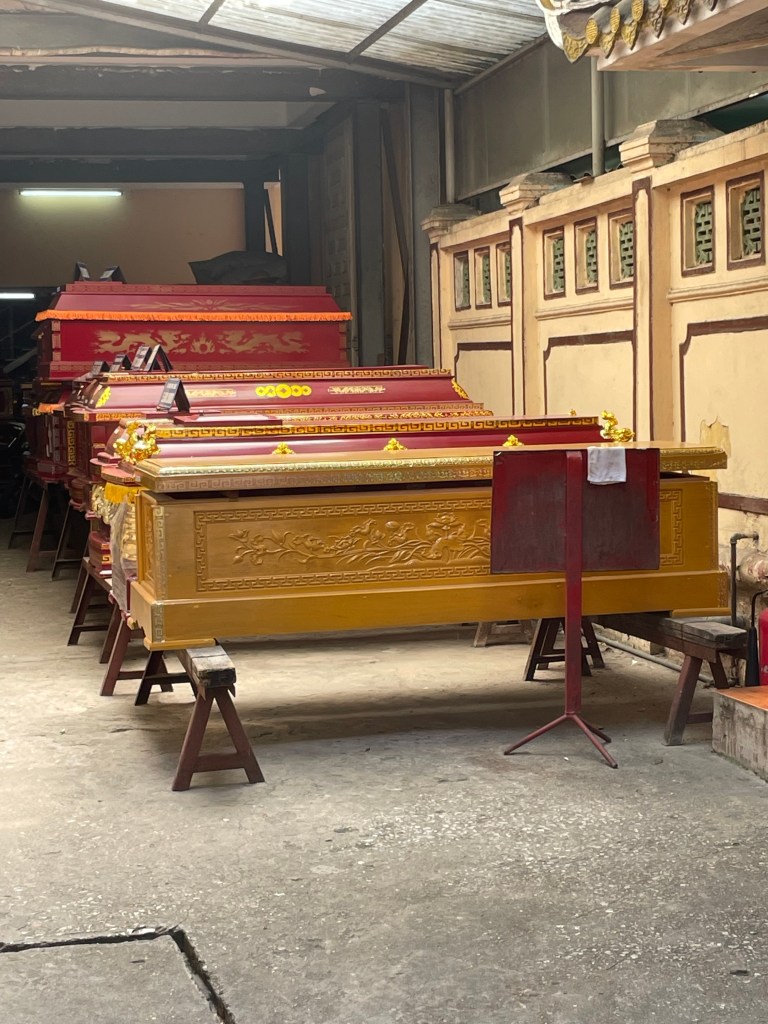 Always we see times colliding and melting together. The woman on her bike in the early morning. The back of the bike is loaded with produce that she will sell today. As she walks down the street, the motor bikes whizz past her, all busy, all rushing. They are the predominant inhabitants of these streets. There are far fewer bicycles than there were 20 years ago. They no longer command the speed of the streets and take very few parking places.