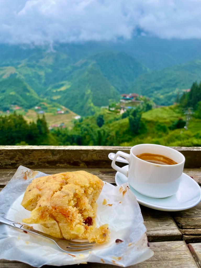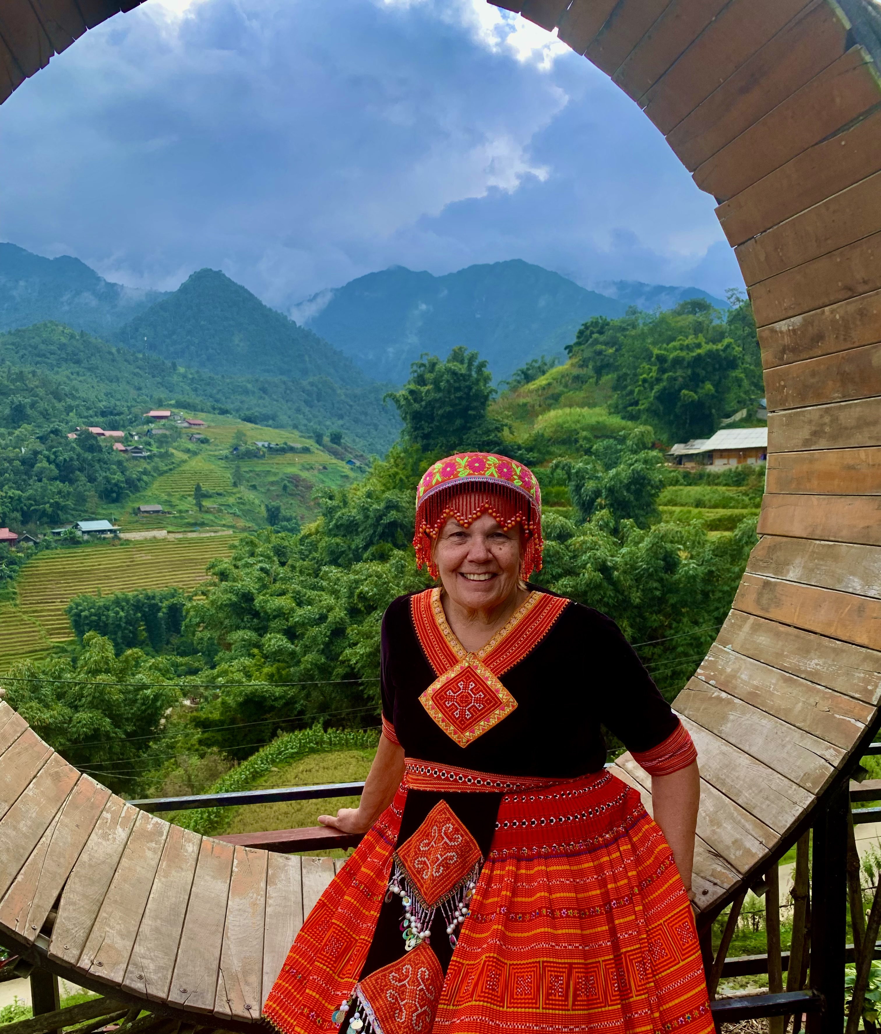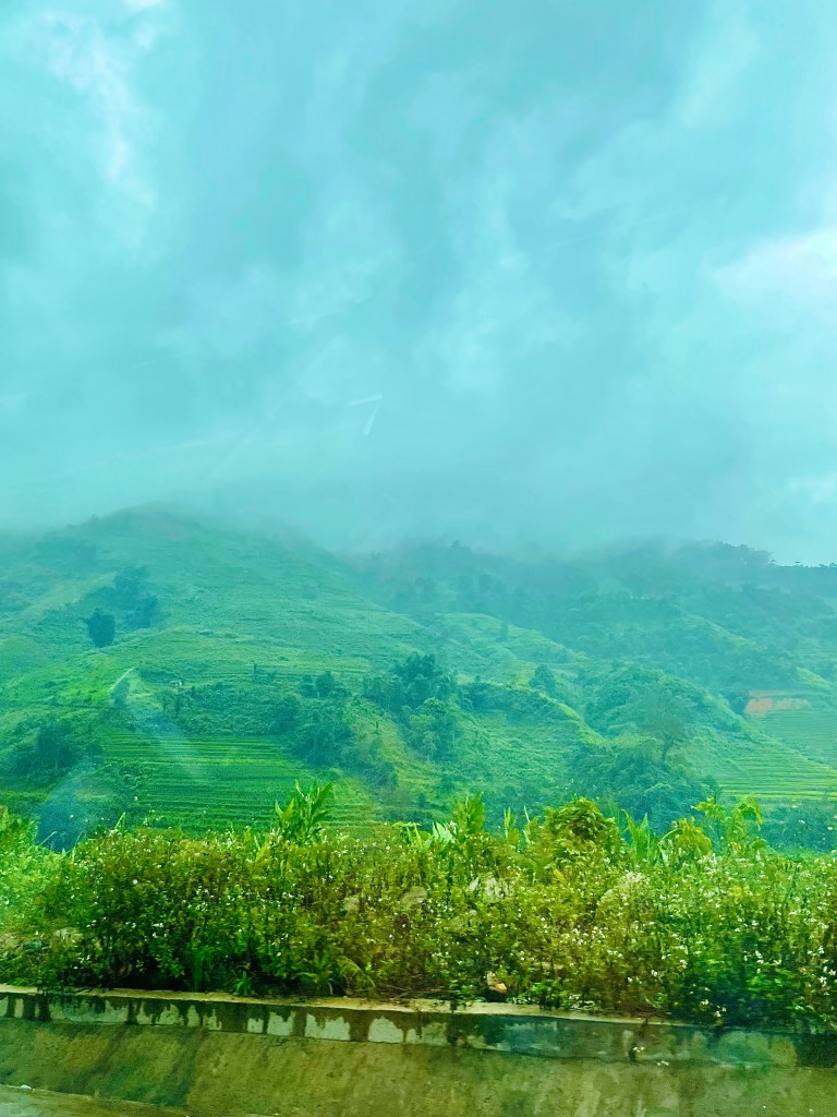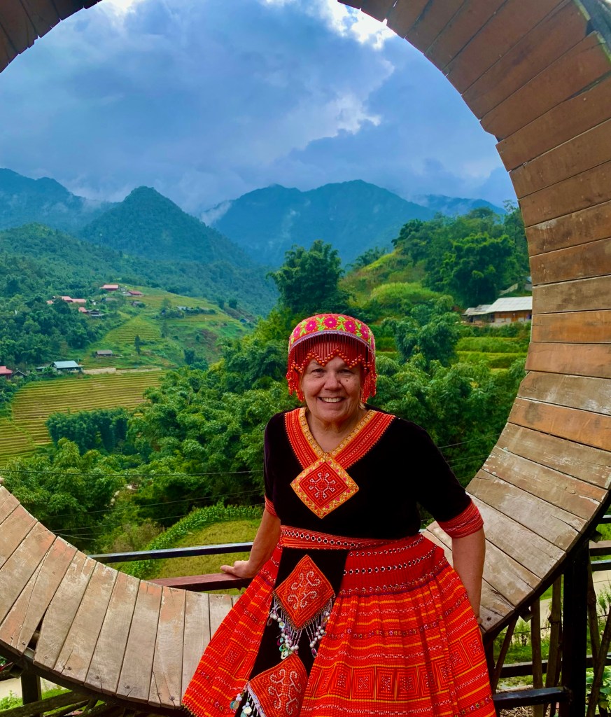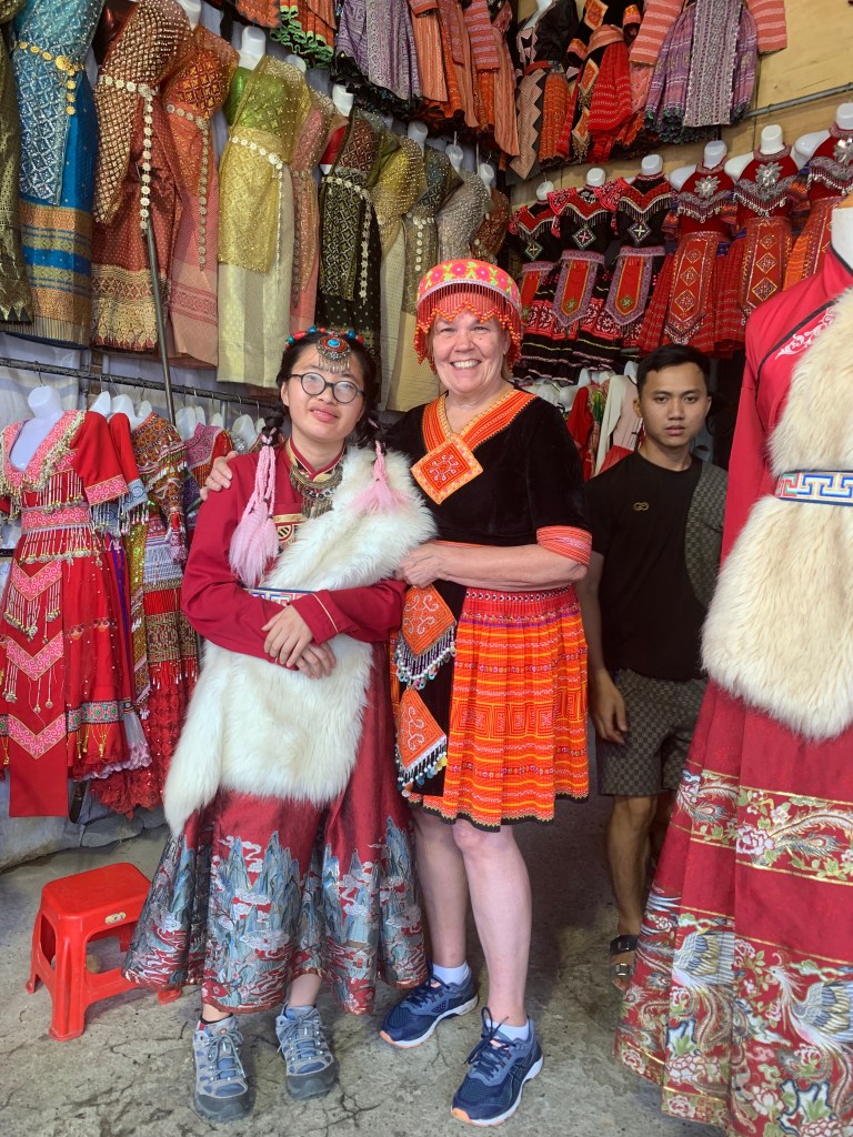 I’ll say now that it was a rough ride for me and left me out of sorts for most of Saturday. Still, we walked up hills, saw the stunning terraced farm lands, got dressed up in traditional dress (like everyone else there and not something that I would ordinarily do), paraded through Cat Cat village, watched couples dancing on the square, and enjoyed late night ice cream in a cafe.