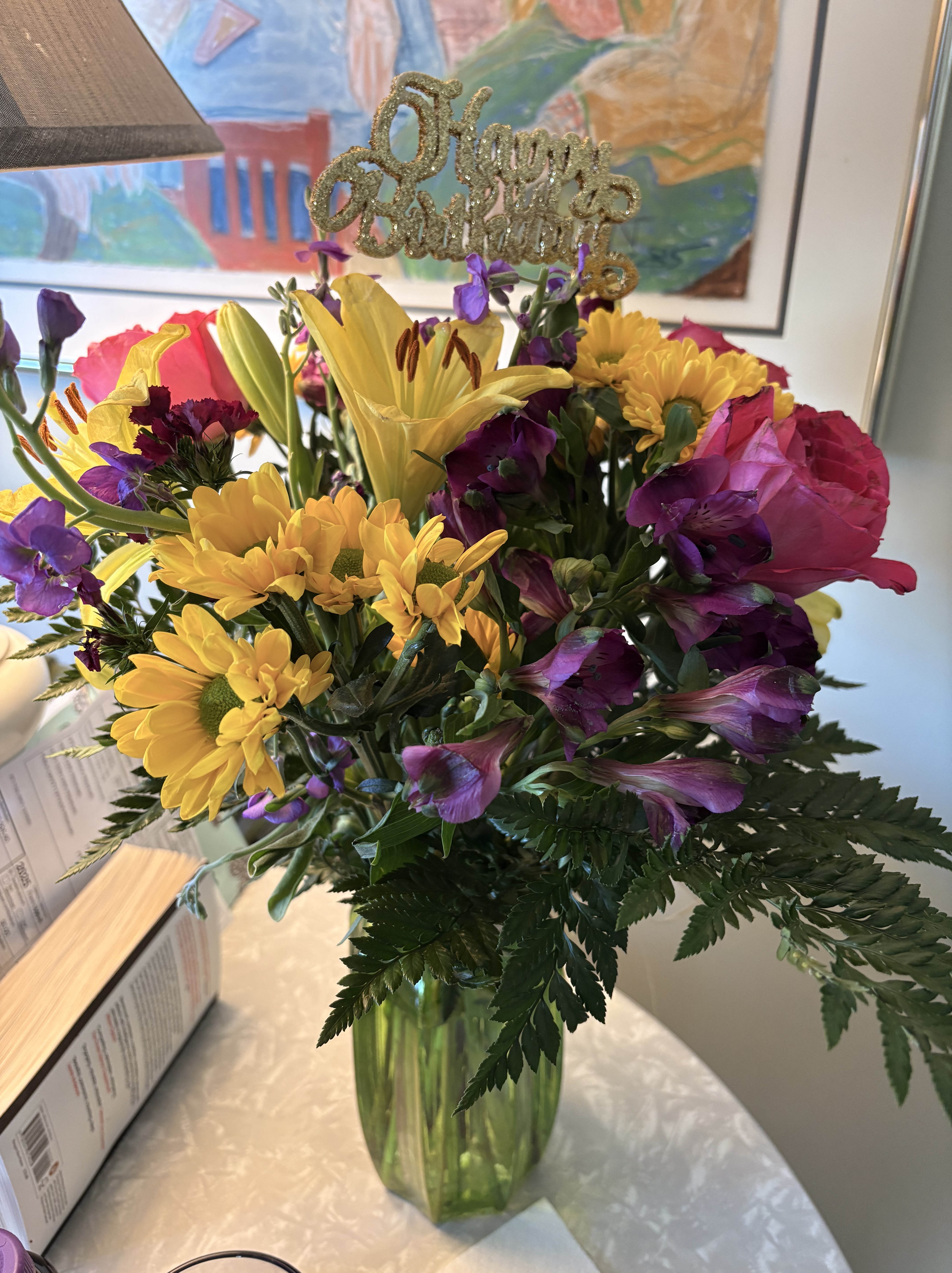 Robin sent a beautiful bouquet of flowers, and I felt so very cared for. Many people texted or emailed or sent Facebook wishes. I had a wonderful handmade card from Wilbur and Alfie. Ed gave me some very fine watercolor paper and the cashmere socks I have on tonight.