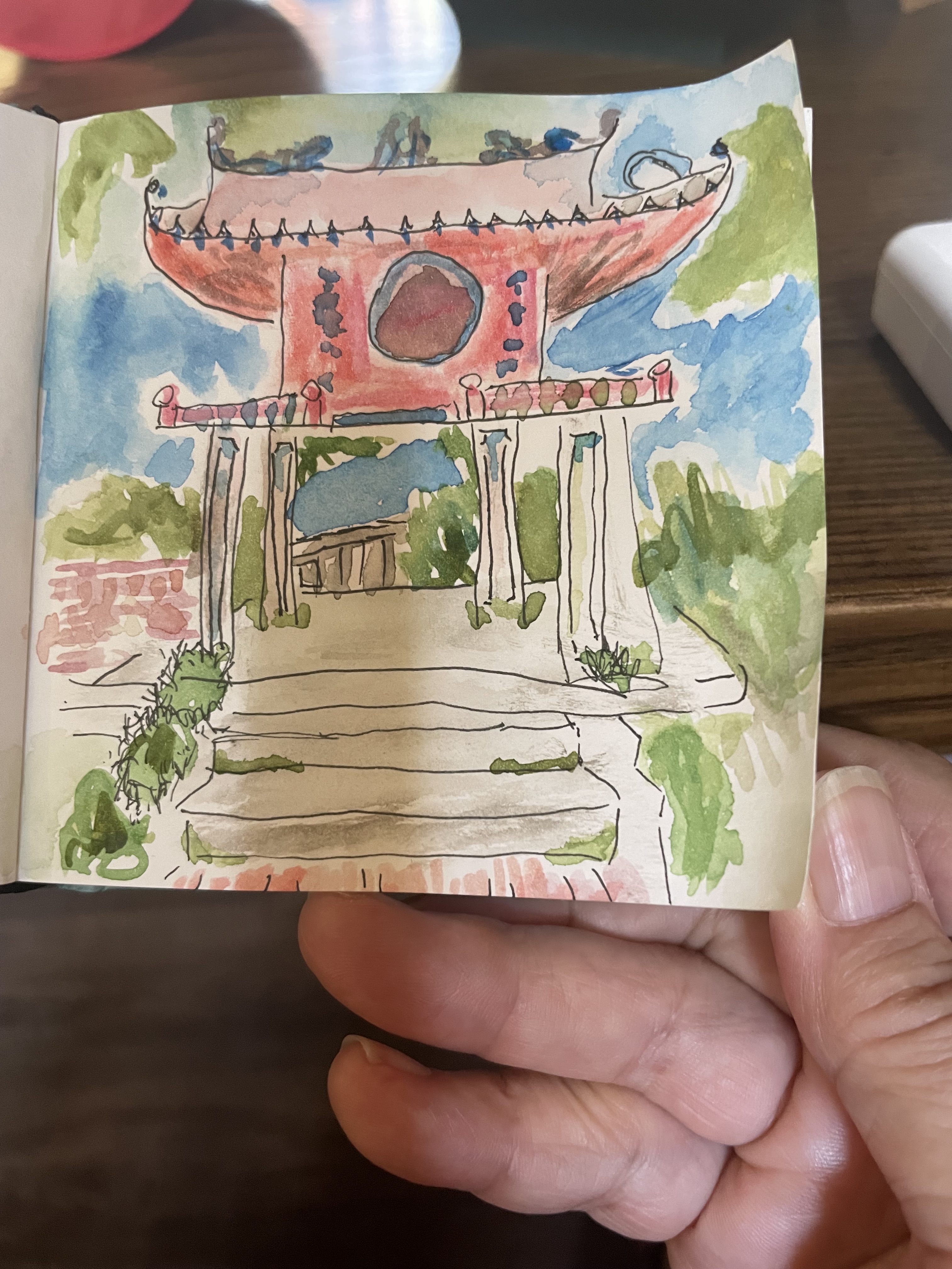 Three weeks into this journey and I acknowledge that I feel challenged on many fronts. In these wee hours of a night time becoming morning, I acknowledge that watching Julia fit into our Asian adventures brings a certain amount of pleasure. I have not technically brought her home, not yet anyway, but we are somewhere where she is much more related to the dominant culture than I am and that feels right. I’ve found a way to get her drawing and painting, at least somewhat. A few days every week we trade a very small notebook back and forth, taking turns drawing and painting. Not great masterpieces but some simple pleasure. It is also wonderful to have a traveling companion who likes to do so many part of travel that I love—long and sometimes multiple visits to museums, days when we are closer to just living here than sightseeing and being tourists, and reveling in the unexpected which lies around almost every corner. It has meant that I have to give up control of everything but there is comfort in that too. Not that releasing my killer grip on travel plans has been without discomfort.